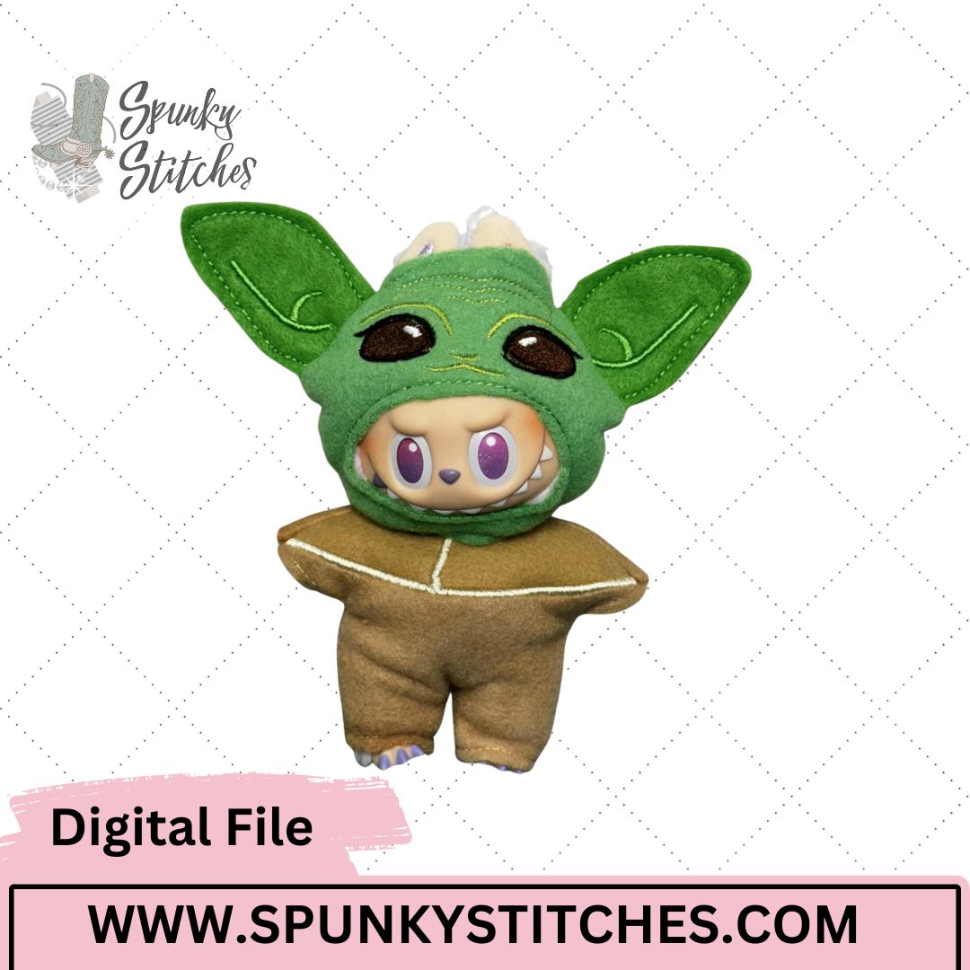 “Stitch you must!” Transform your fuzzy friend into a galaxy-famous little master with the Bubu Monster Yoda Costume! This in-the-hoop design features Bubu dressed as the wise and tiny Yoda, complete with signature ears and robe details.