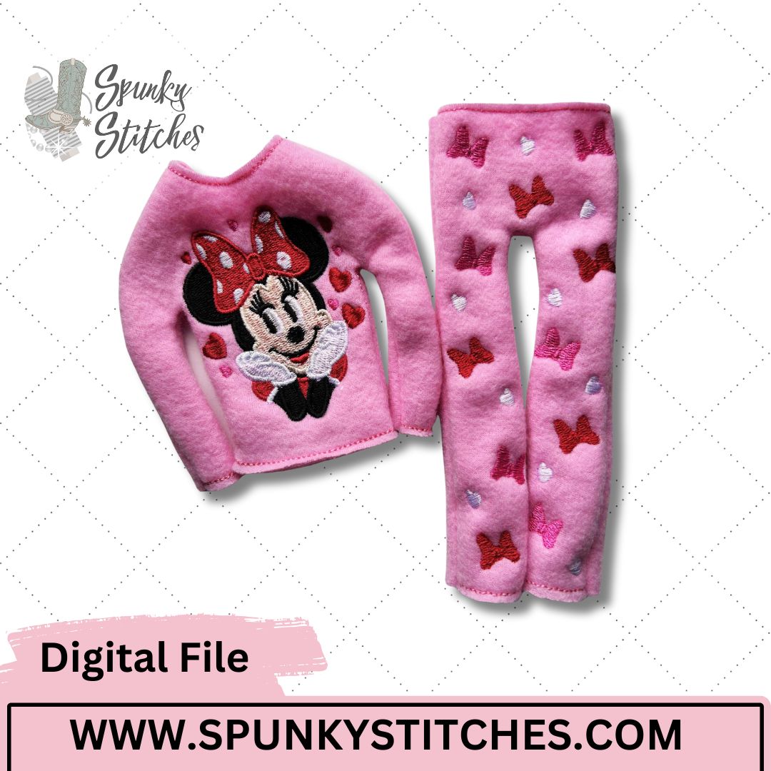 The Minnie Mouse Elf Outfit brings classic Disney charm to your elf’s wardrobe! With her signature red polka-dot dress, matching bow, and sweet mouse ears, this in-the-hoop costume is full of cheerful magic. Perfect for themed displays, Disney-loving households, or just adding a touch of mouse-inspired fun to your elf’s adventures!