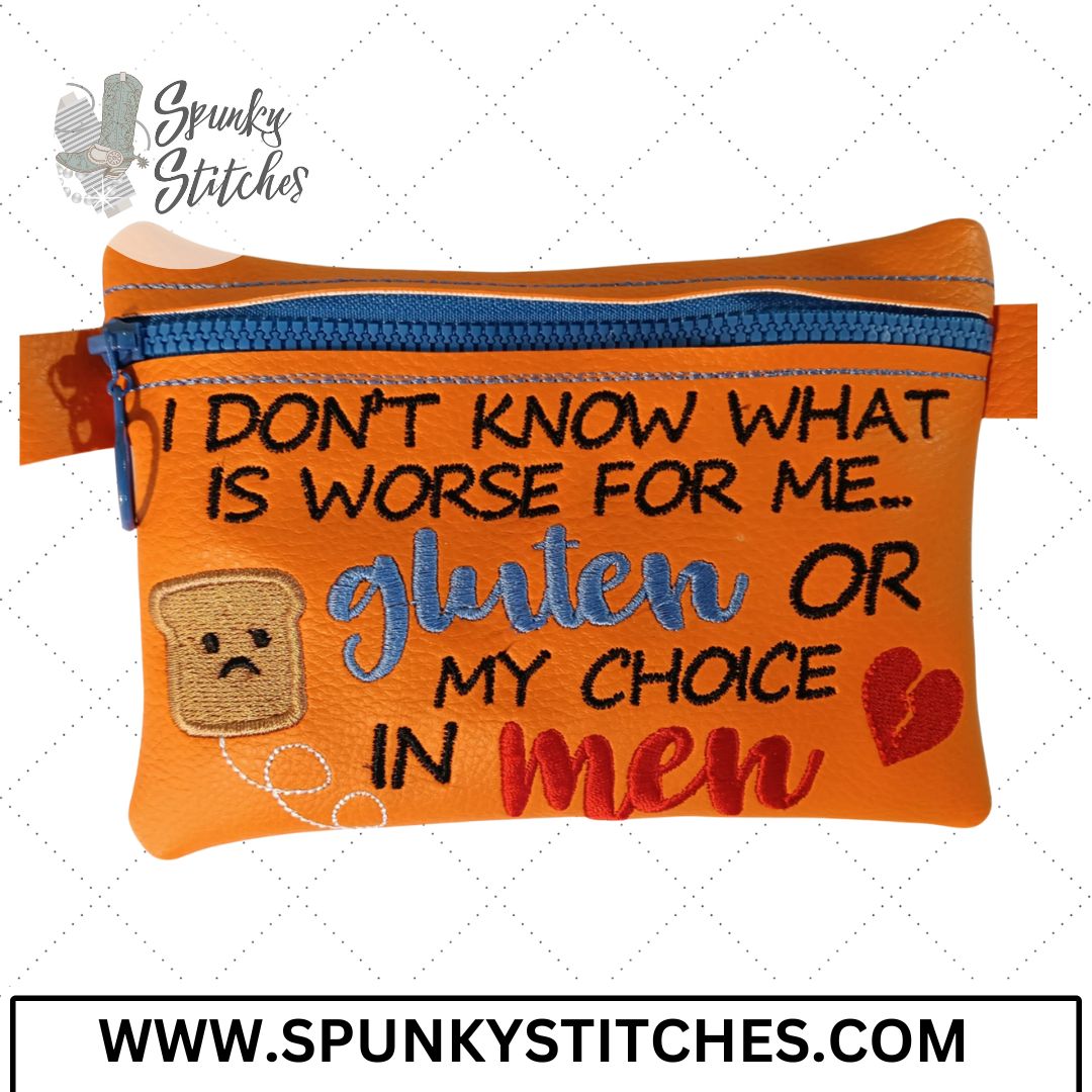 Carry your essentials with attitude using the Gluten or My Choice In Men zipper bag embroidery design! Perfect for the man who knows what he wants — and maybe doesn’t want gluten to get in the way.