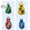 File comes in a single hoop 4×4 file and a multiple in a 5×7 file. Includes all four house key fobs, Gryffindor, Hufflepuff, Ravenclaw and Slytherin.