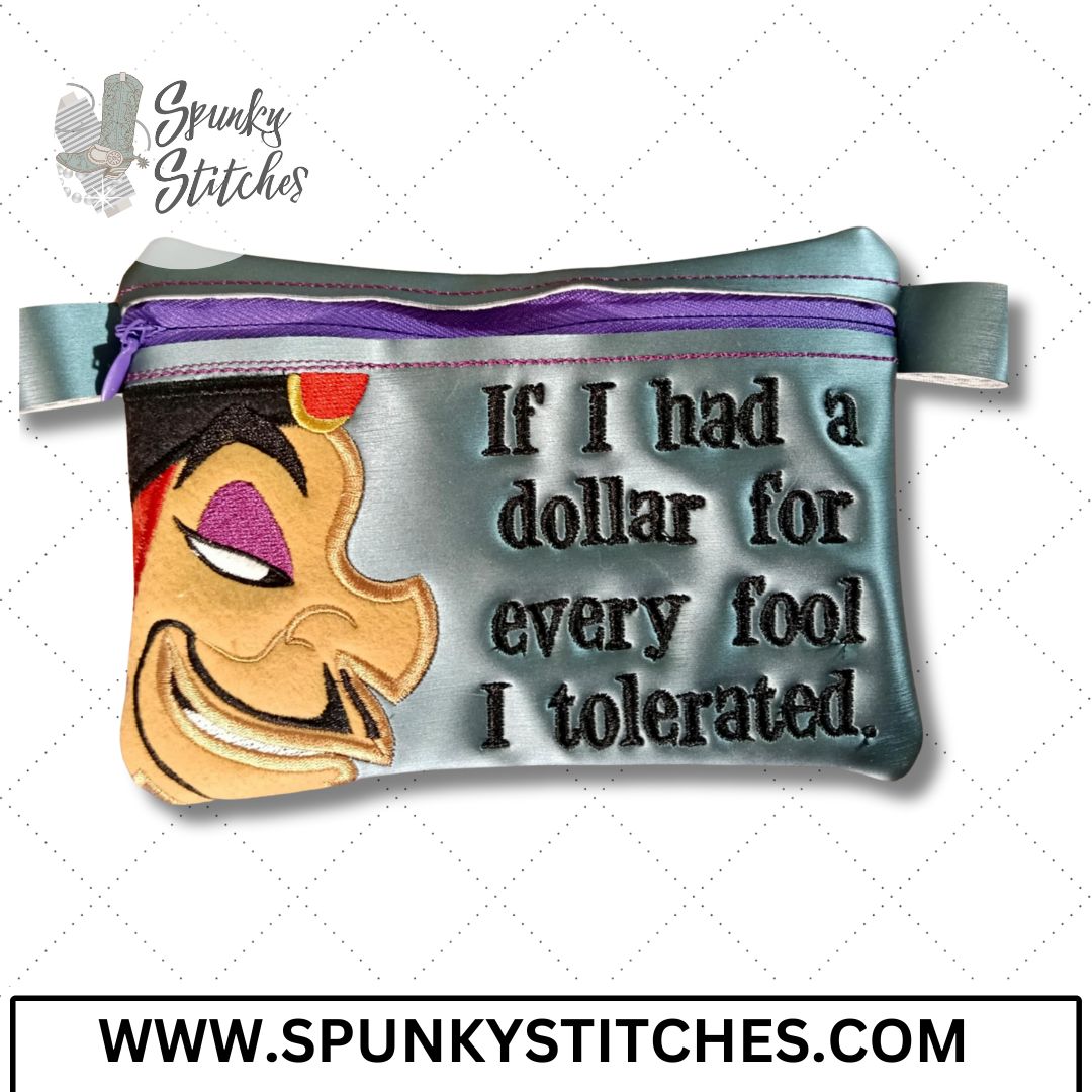 Add a little villainous flair to your everyday essentials with this wickedly stylish zipper bag. Featuring the iconic sass of Agrabah’s most tolerant sorcerer, this bag reads: