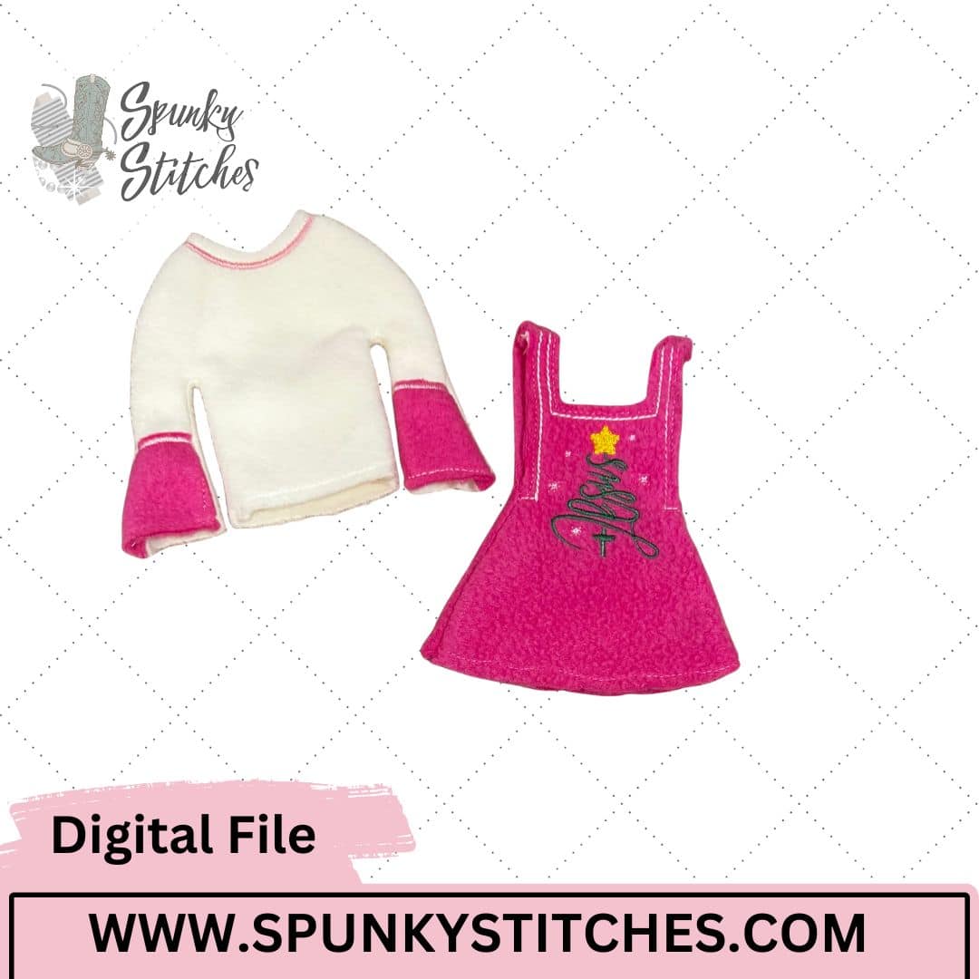 Celebrate the heart of Christmas with this Jesus Tree Overall Dress, a beautiful in-the-hoop embroidery design featuring a Christmas tree formed entirely by the word “Jesus.” This artistic lettering design creates a meaningful, faith-filled statement while giving your elf the sweetest holiday outfit.