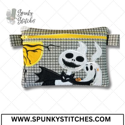 Bring a little haunted holiday charm to your stitch collection with the Pumpkin King and Pup Zipper Bag! This in-the-hoop embroidery design features a skeletal hero and his loyal ghostly pup — the perfect duo for fans of spooky fun, gothic style, and all things stitched with a twist.