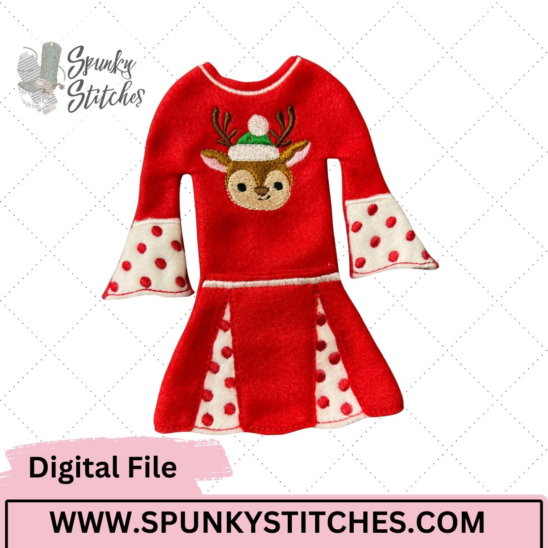 Add festive charm to your elf’s wardrobe with this adorable Reindeer Skirt Set! This cute holiday outfit features a twirly skirt with a playful reindeer motif, paired with a coordinating top for the perfect seasonal look. Designed to fit 12-inch elves, this set stitches up beautifully and brings instant holiday magic to any display.
