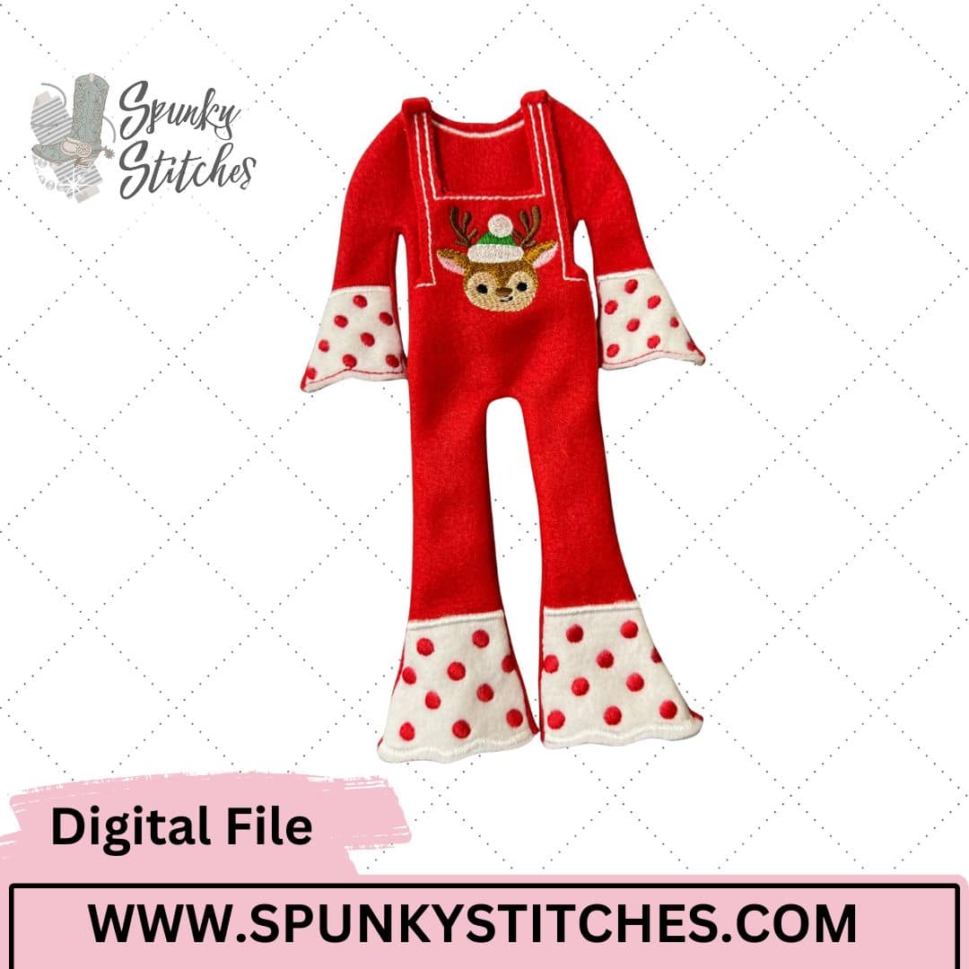 Give your elf a festive makeover with these adorable Ruffled Reindeer Overalls! This sweet holiday outfit features classic overall styling upgraded with playful ruffle accents and a charming reindeer motif front and center. Designed to fit 12-inch elves, this design stitches up beautifully, offering crisp details and a polished finish.