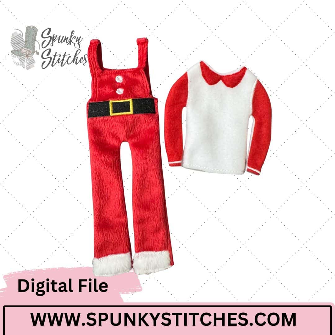 Dress your 12″ elves in classic Christmas charm with this adorable Santa Overalls Outfit! This in-the-hoop embroidery design gives your elf a full Santa-inspired makeover—complete with festive red overalls, faux button details, and the signature jolly style we all love.